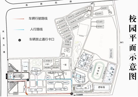 5.于9月15日22:00前在西门行至综合楼右转处设置禁止直行卡口,在综合楼和1号教学楼间设置禁止通行卡口,在南围墙和1号教学楼间道路尽头设置禁止通行卡口。